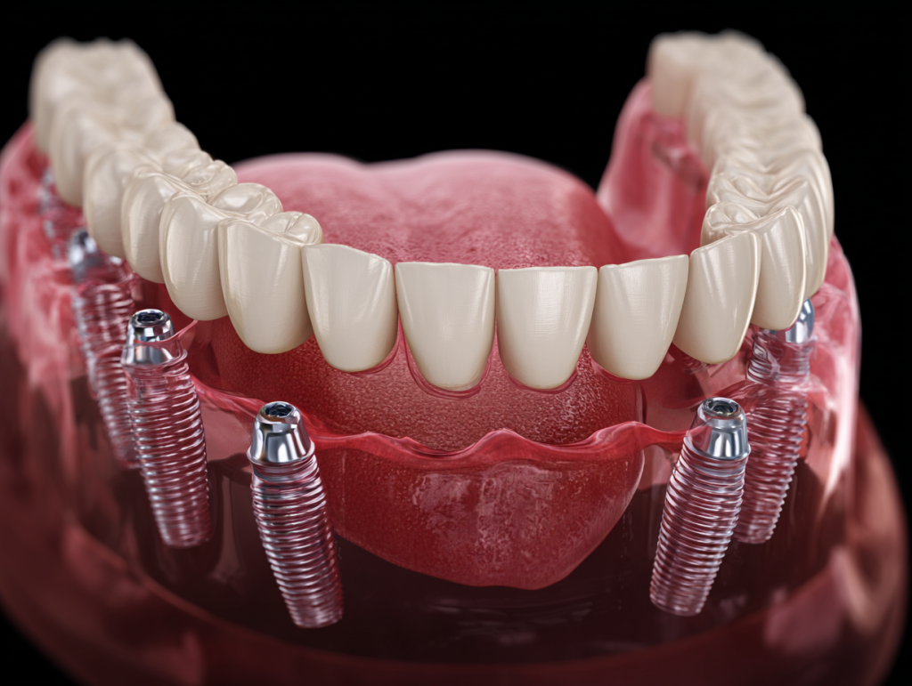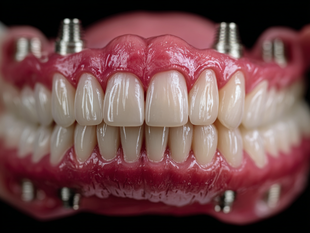 Метод заключается в установке 4 или 6 имплантатов в определенные точки челюсти под выверенным углом. Это создает надежную опору для несъемного протеза, который выглядит и ощущается как свои зубы.