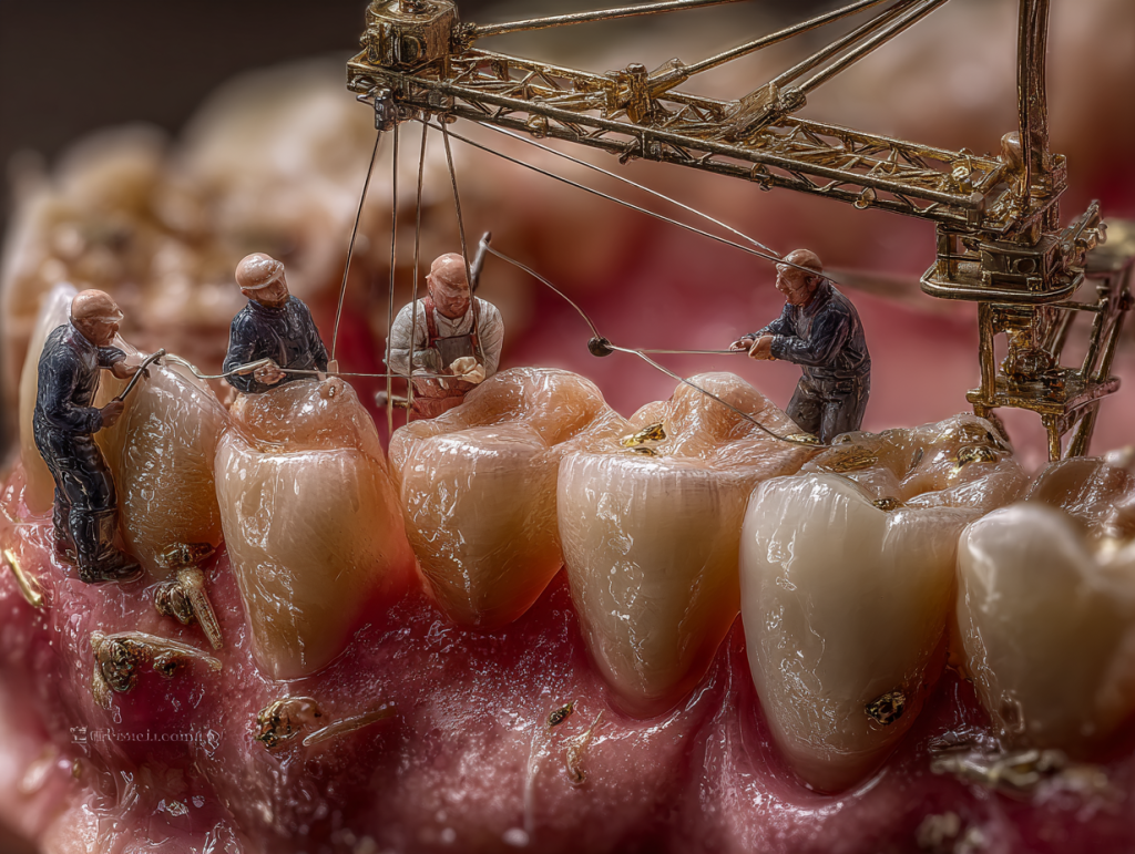 Никакого неточного литья: Мы принципиально отказались от традиционного литья металла, которое дает усадку и зазоры. Вместо этого мы используем методику селективного лазерного спекания металла (SLM). Это гарантирует микронную точность прилегания коронки к зубу, исключая развитие кариеса под ней.